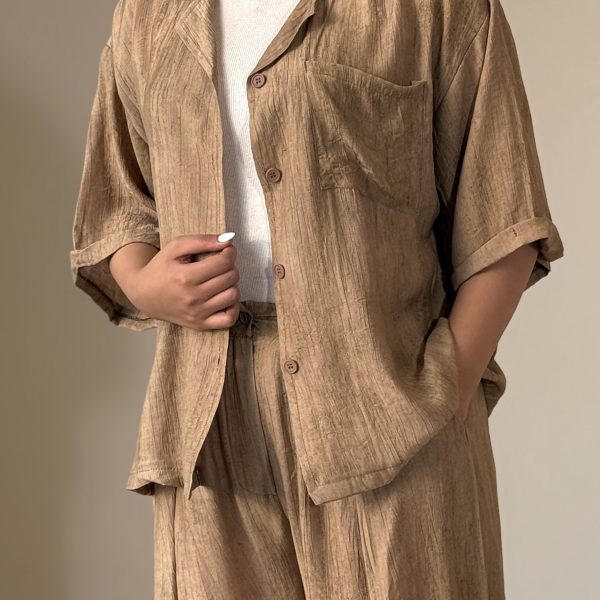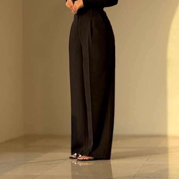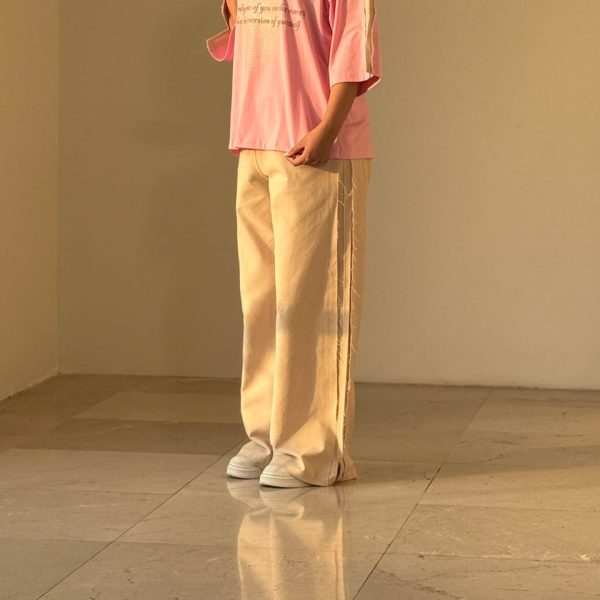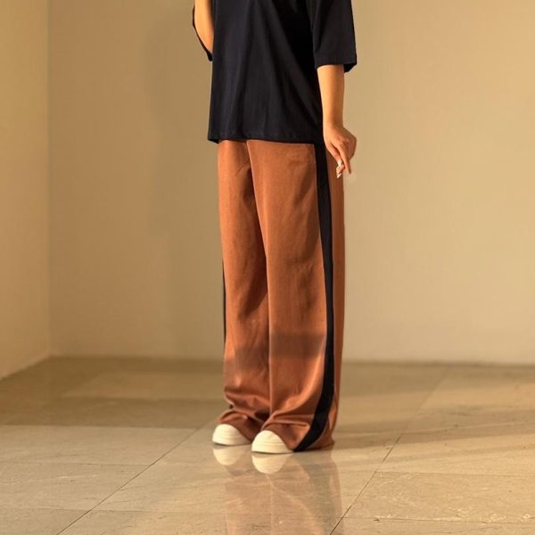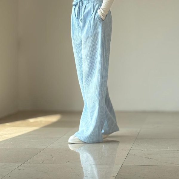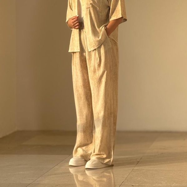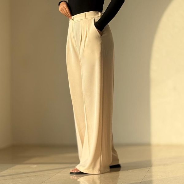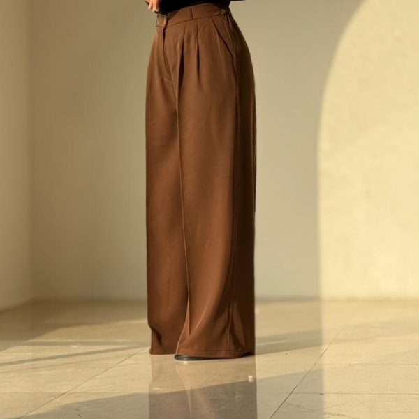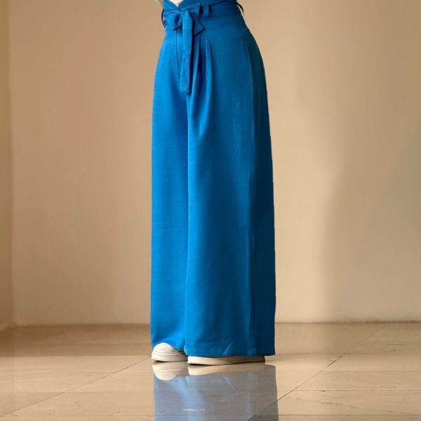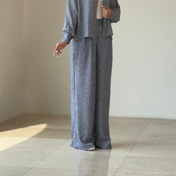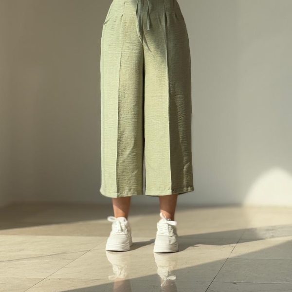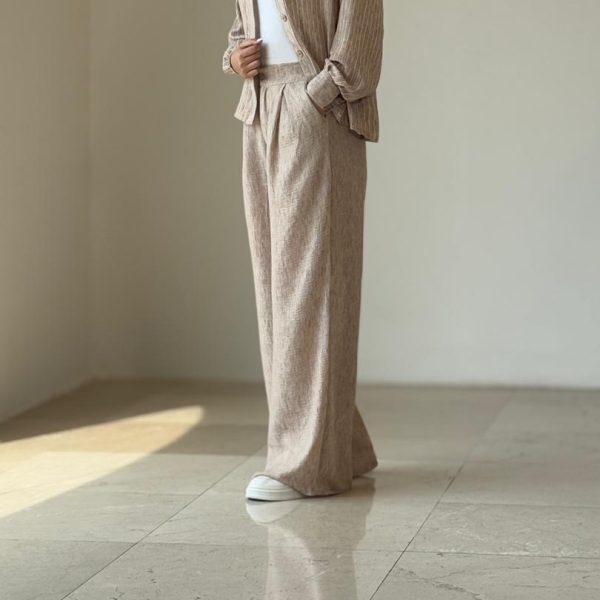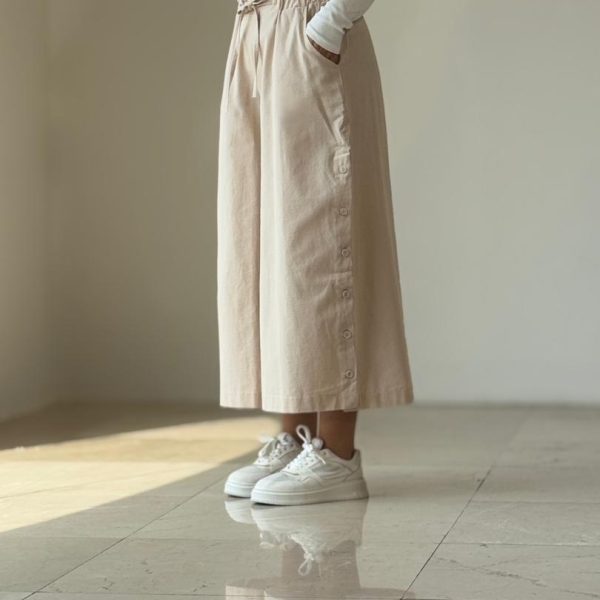 شلوار لینن واید بقل دکمه کد ۳۳۷۶