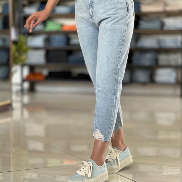 شلوارجین ذغالی دمپا چاکدار کد ۱۷۳۱