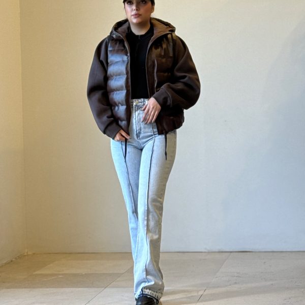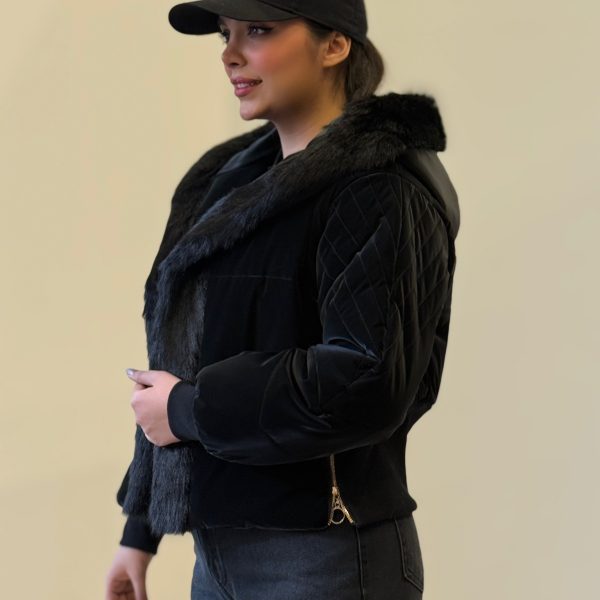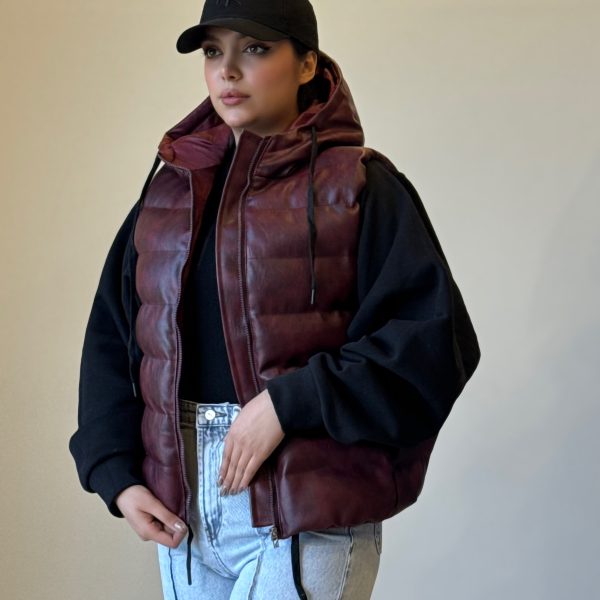 کاپشن چرم آستین دورس کد ۳۷۴۳