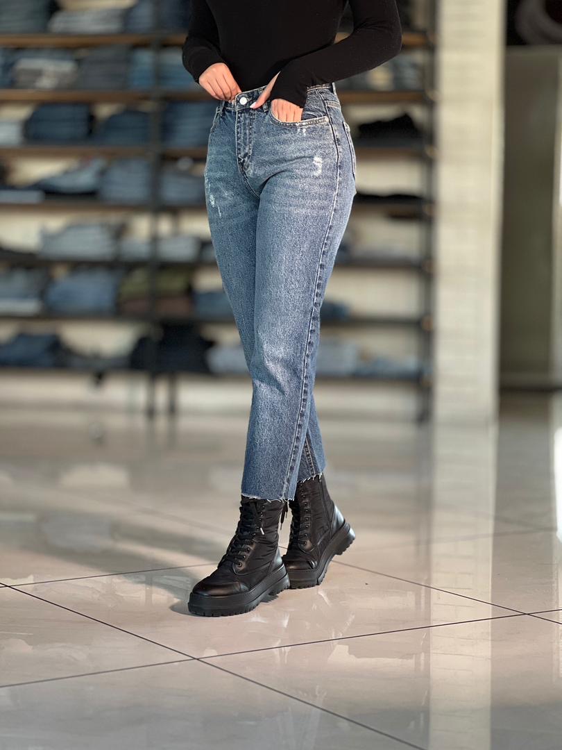 شلوار جین مام فیت یخی زاپدار کد ۱۷۴۱