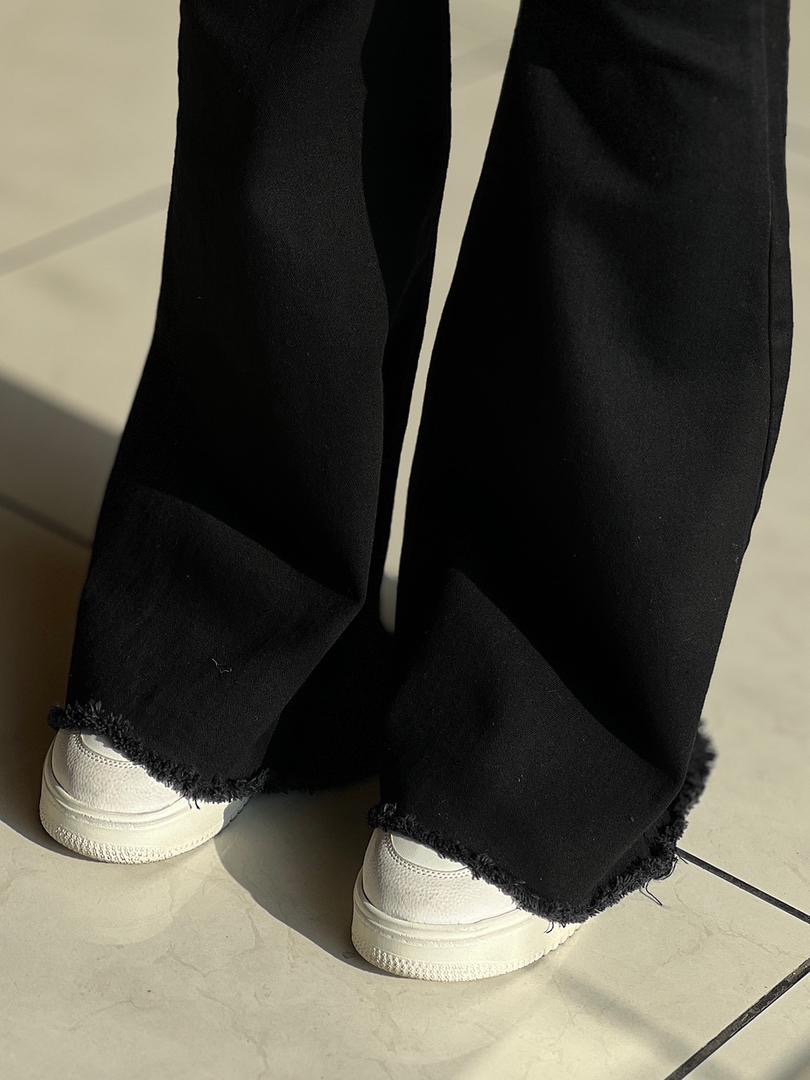 شلوار نیم بگ ذغالی پایین ریش کد ١٩۵۶