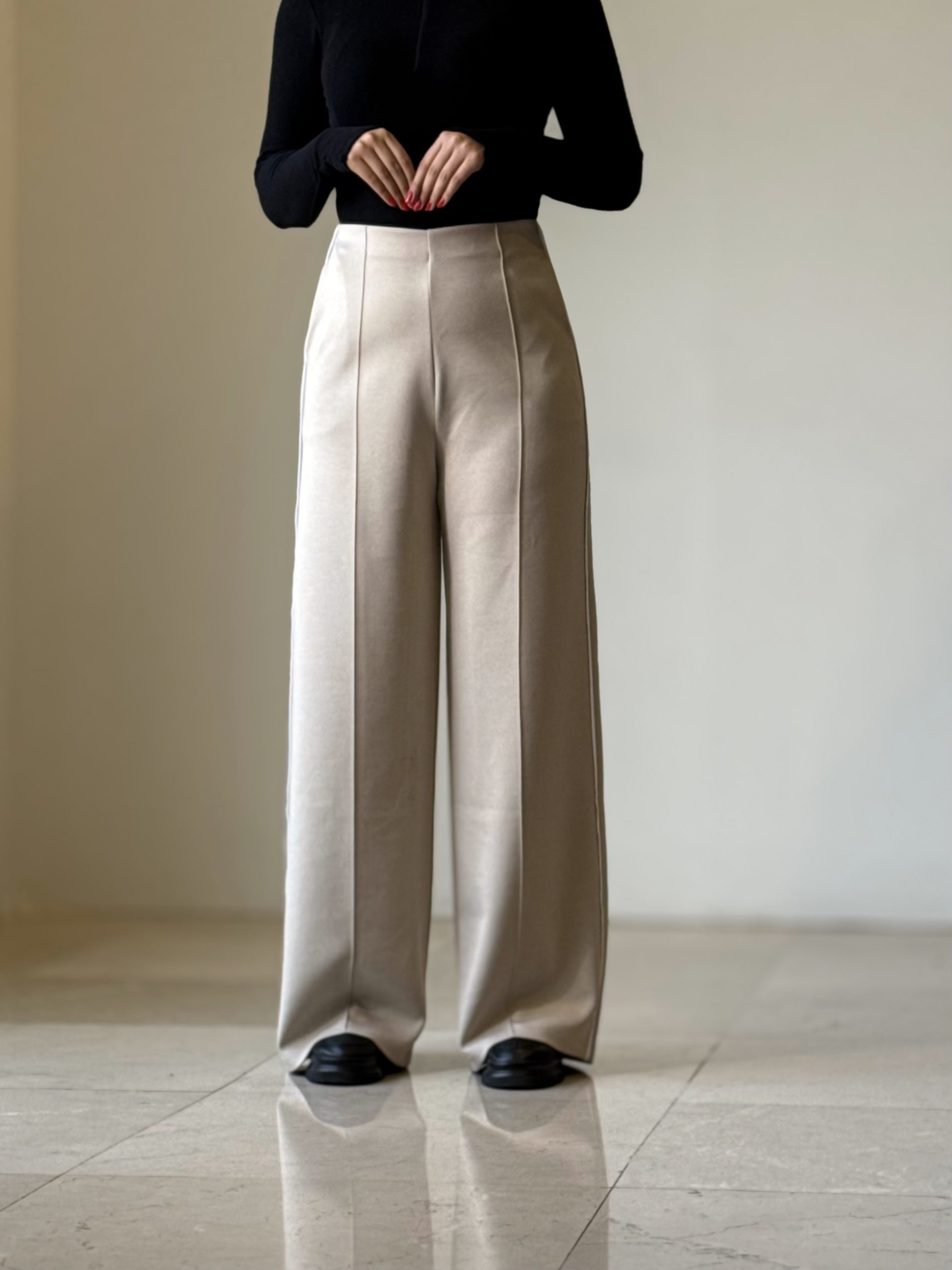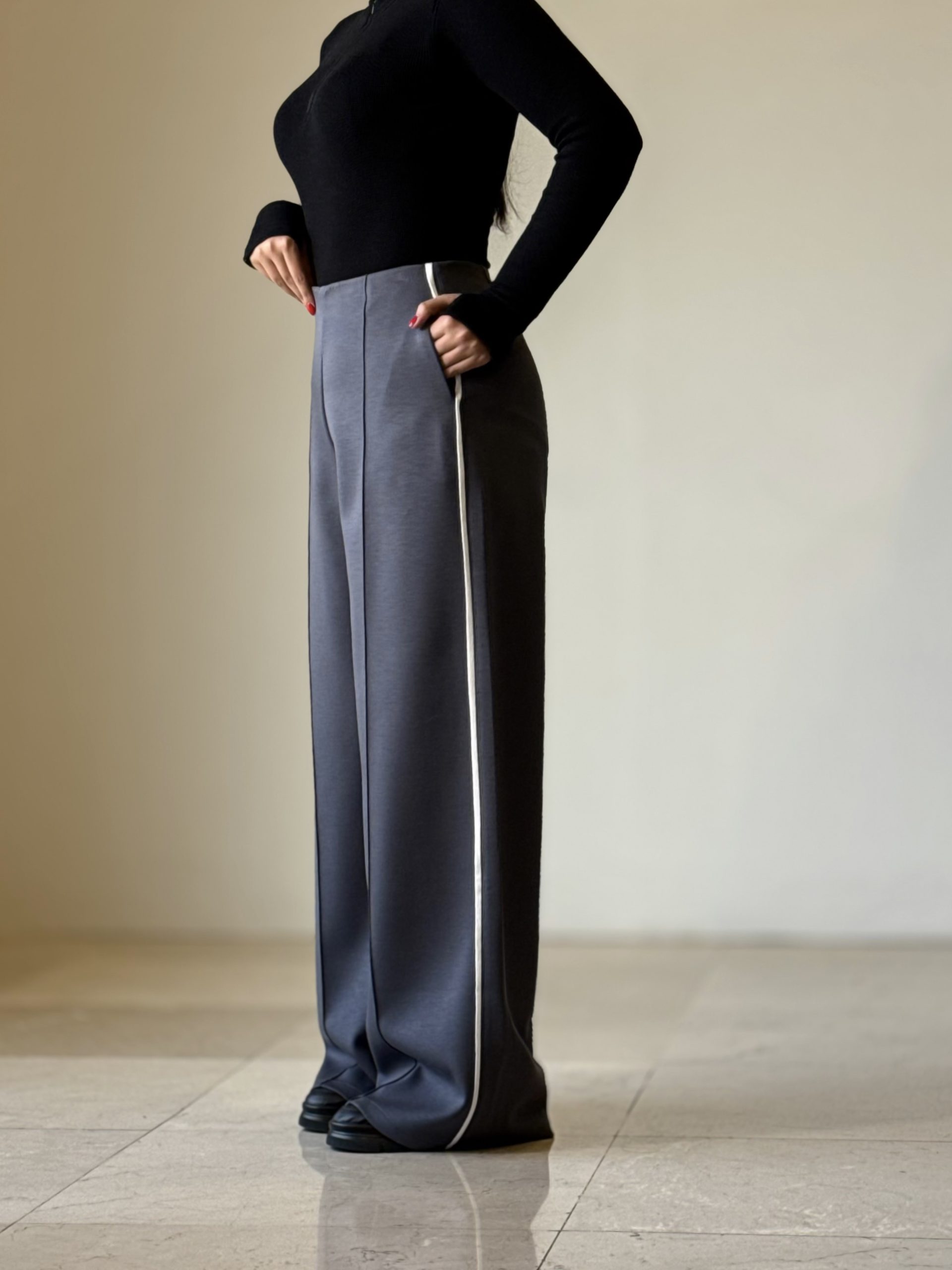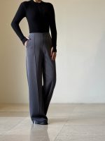 شلوار نیم بگ ذغالی پایین ریش کد ١٩۵۶