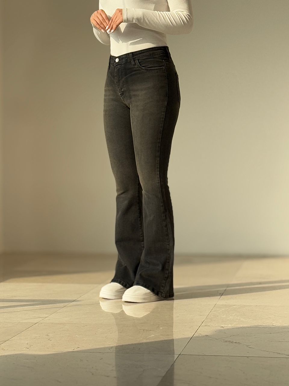 شلوار نیم بگ ذغالی پایین ریش کد ١٩۵۶