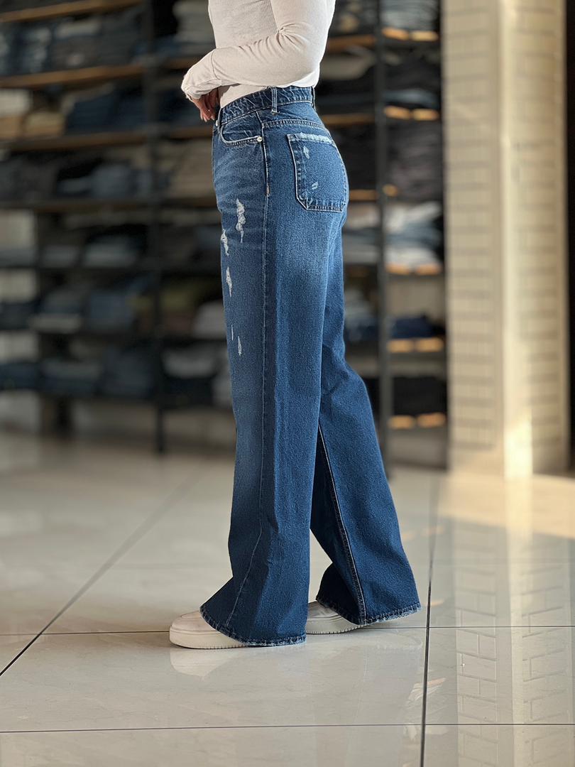 شلوار بگ جین آبی روشن زاپدار کد ۱۸۵۰