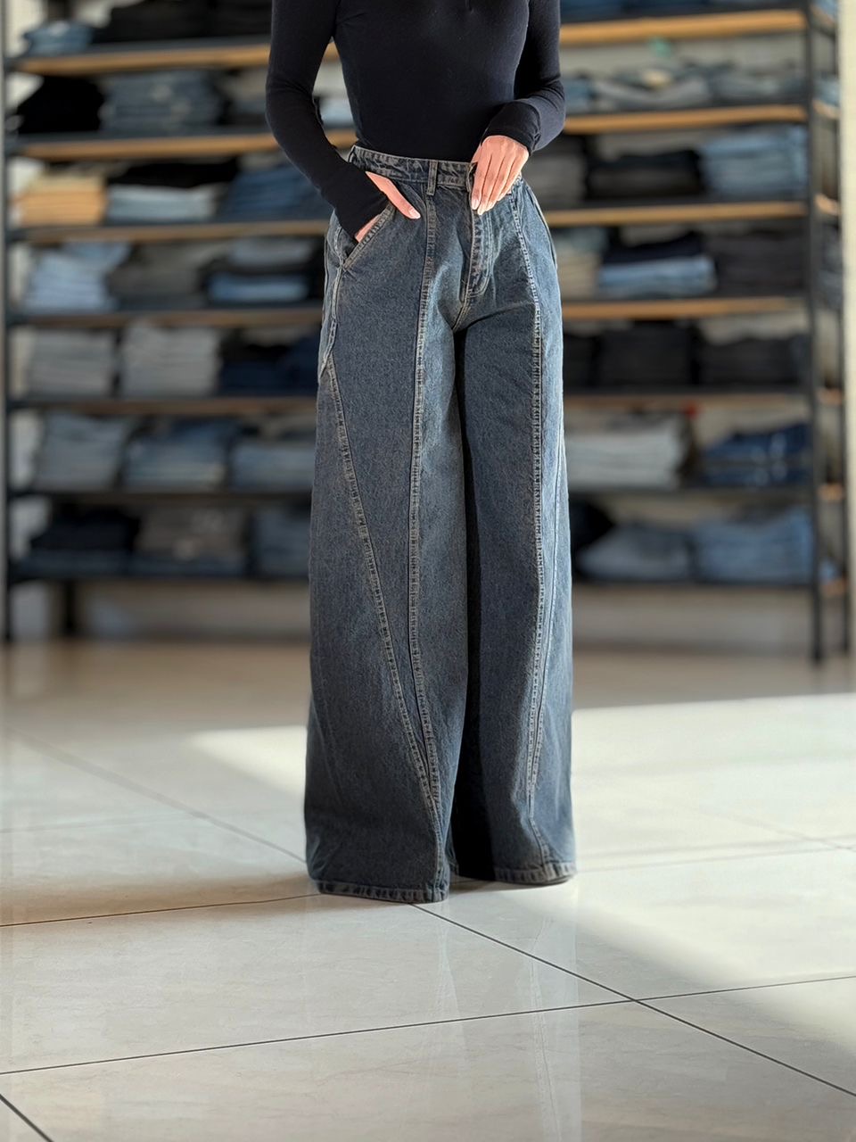 شلوار نیم بگ جین کد ۱۷۹۶