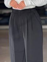 شلوار نیم بگ ذغالی پایین ریش کد ١٩۵۶
