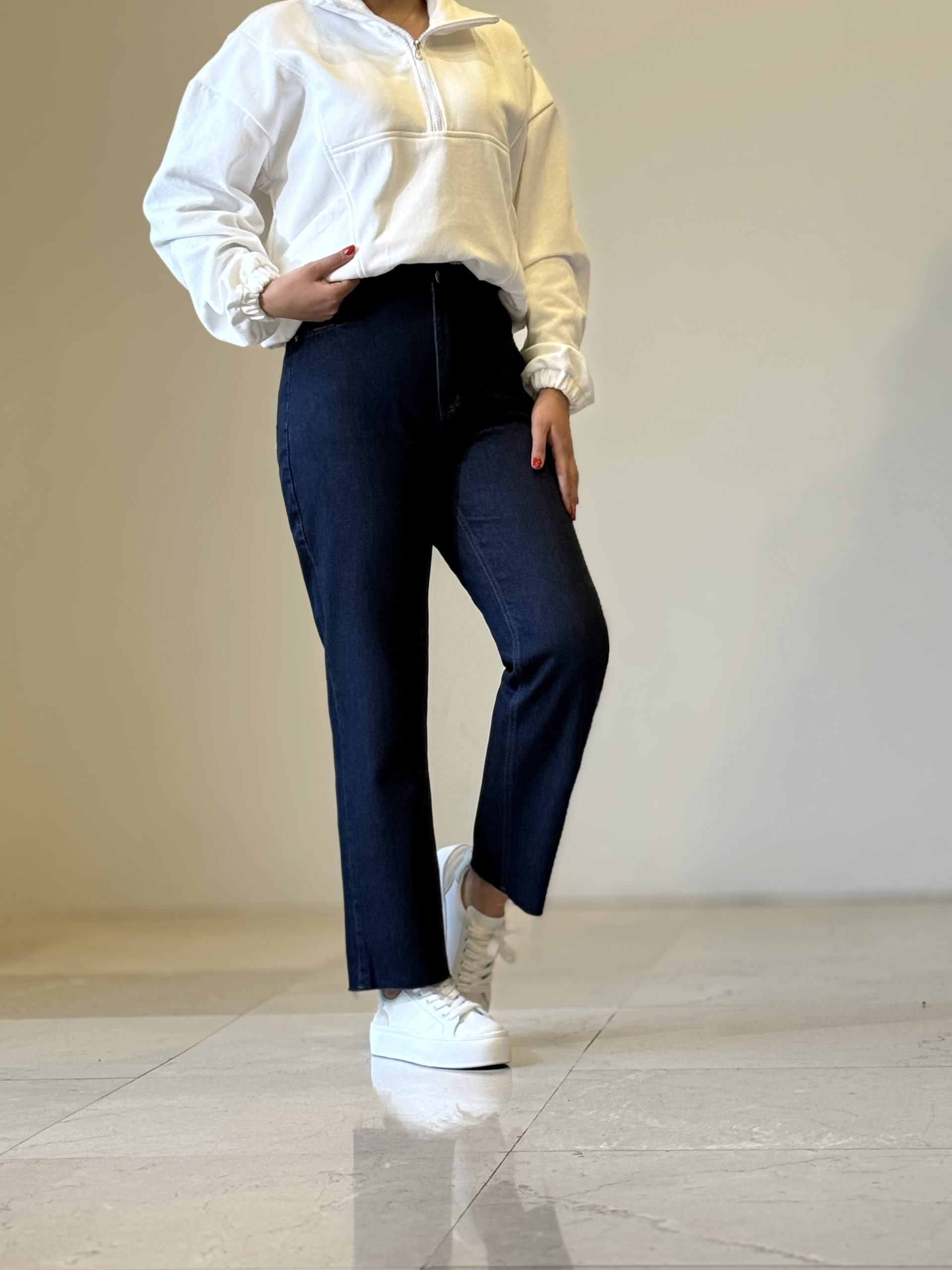 شلوار جین مام فیت سرمه ای کد ۱۹۶۷