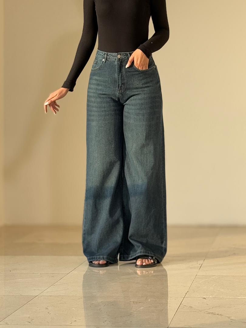 شلوار جین مام فیت سرمه ای کد ۱۹۶۷