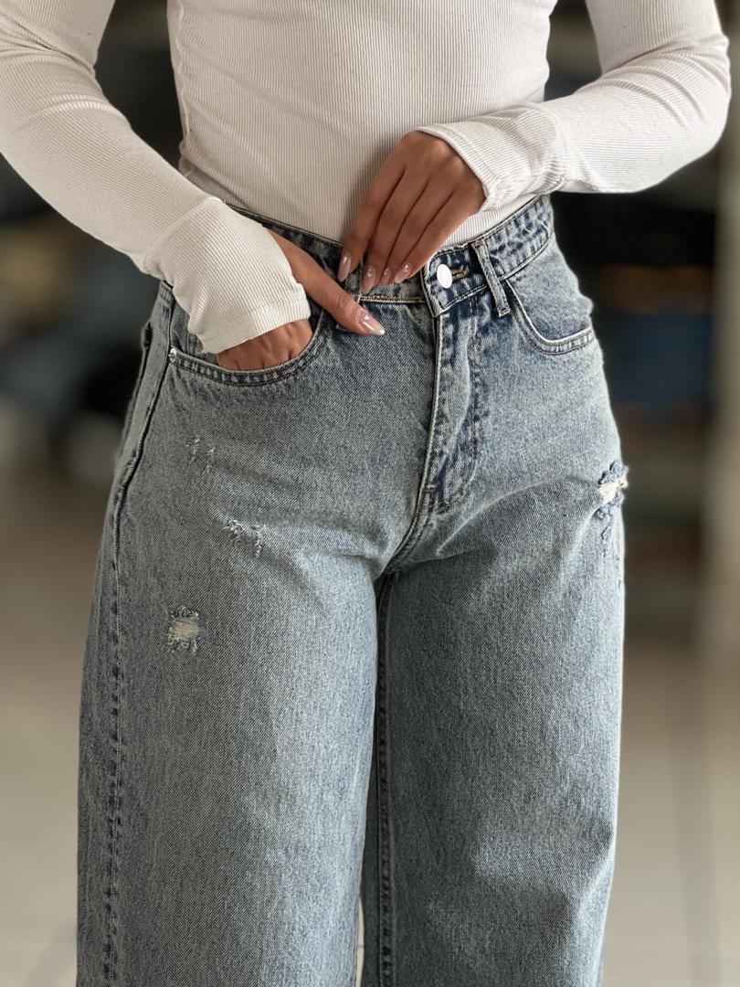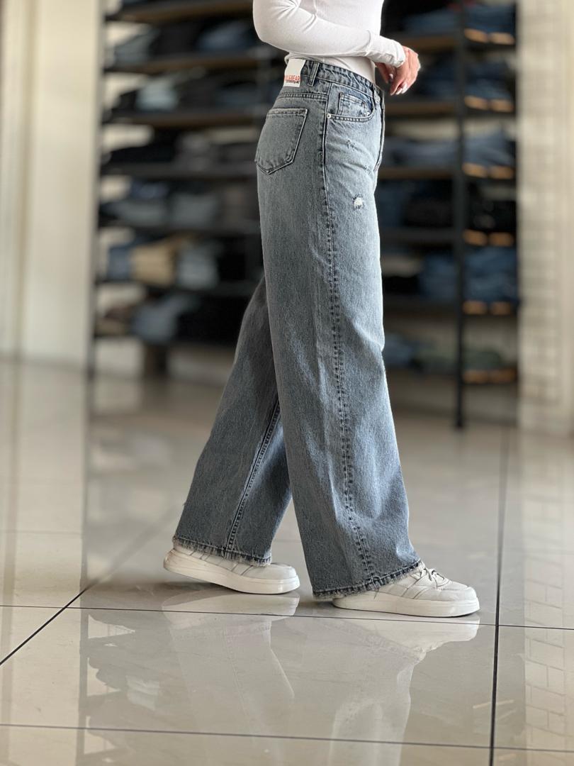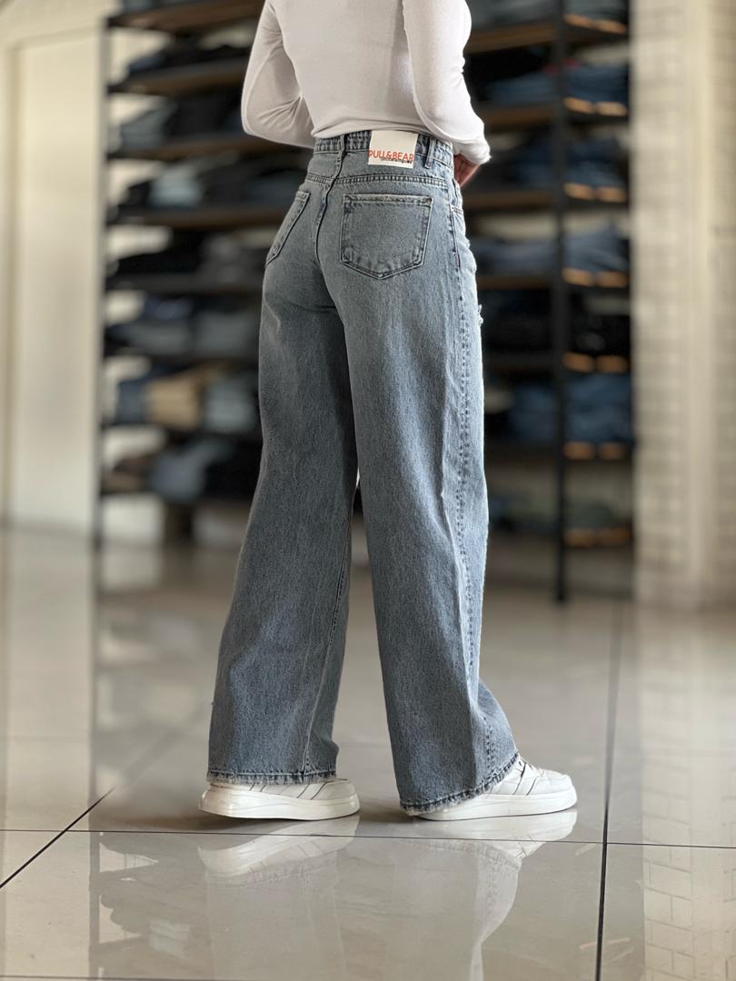 خانه شلوار شلوار جین بگ آبی کثیف روشن کد ٢٢٧٣