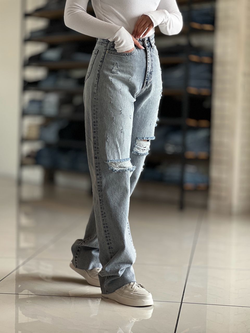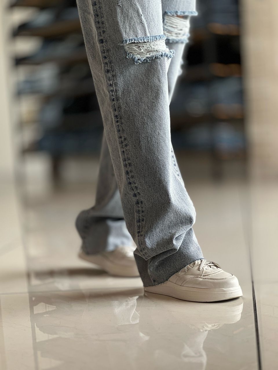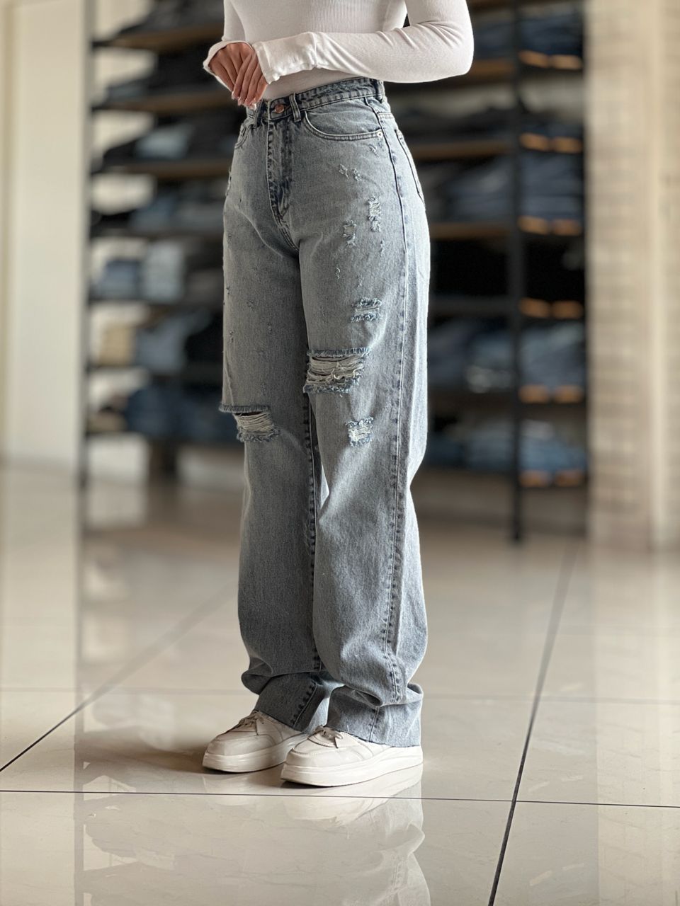 شلوار جین نیم بگ دمپا چاکدار کد ۱۸۶۰