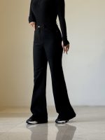 شلوار نیم بگ ذغالی پایین ریش کد ١٩۵۶