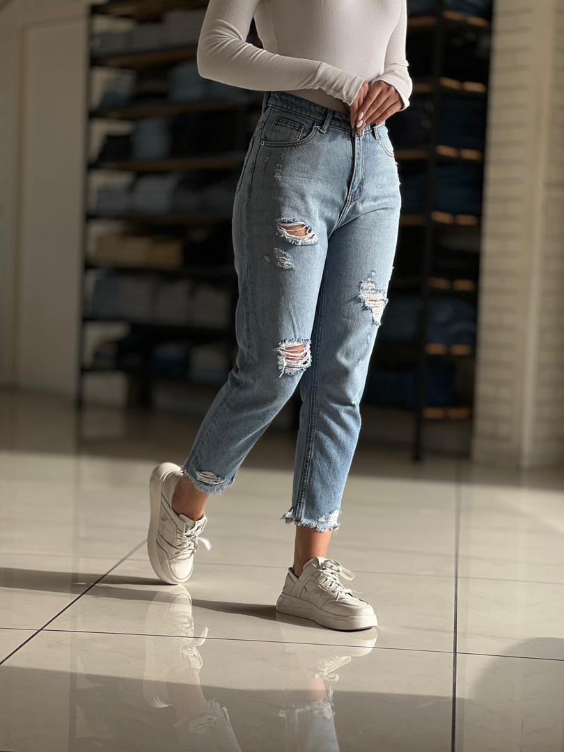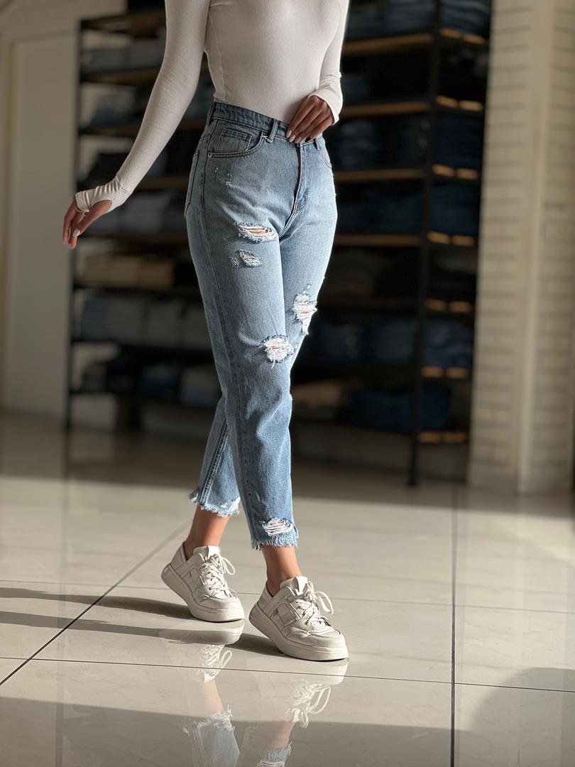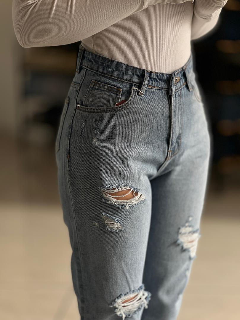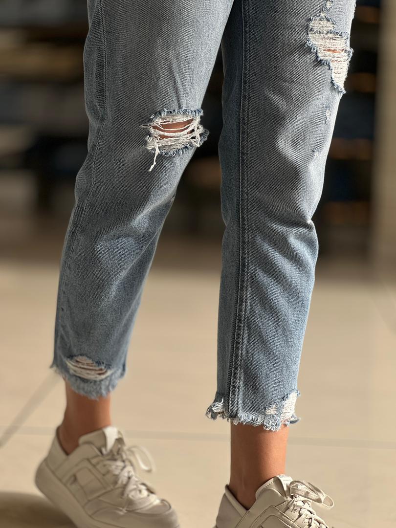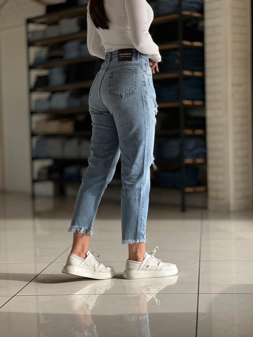 شلوار جین مام استایل دمپا زاپدار کد ۲۰۷۰