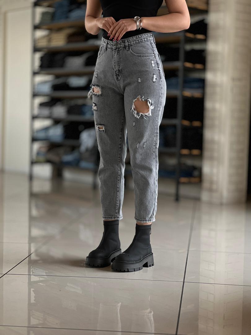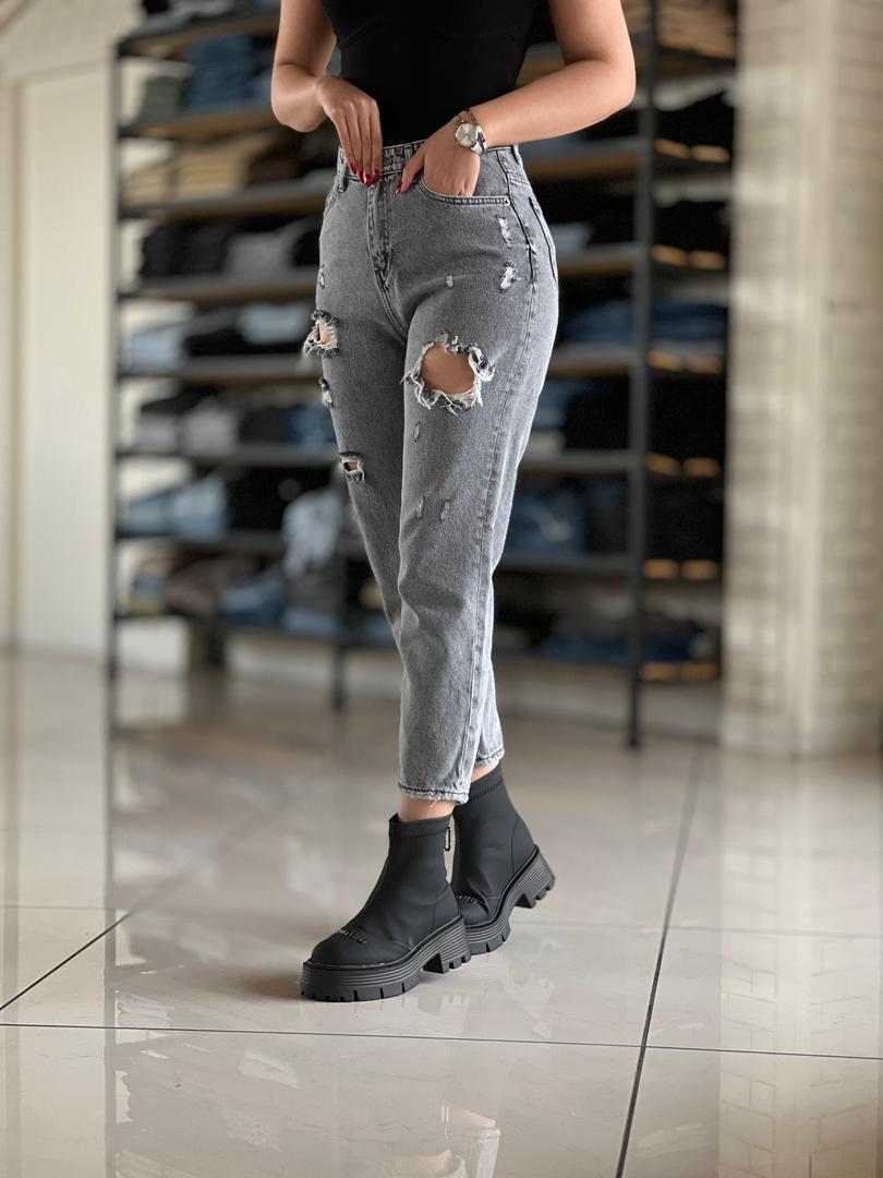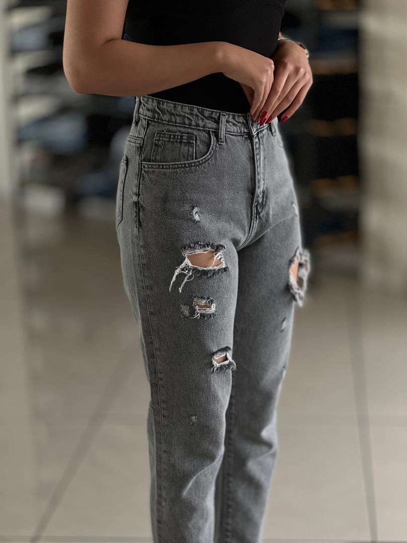 شلوار جین مام استایل طوسی زاپدار کد ۲۱۲۹