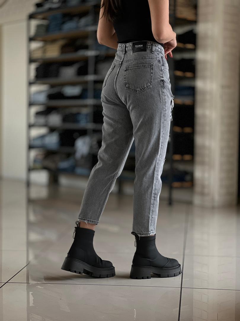 شلوار جین مام استایل طوسی  زاپدار کد ۲۱۲۹