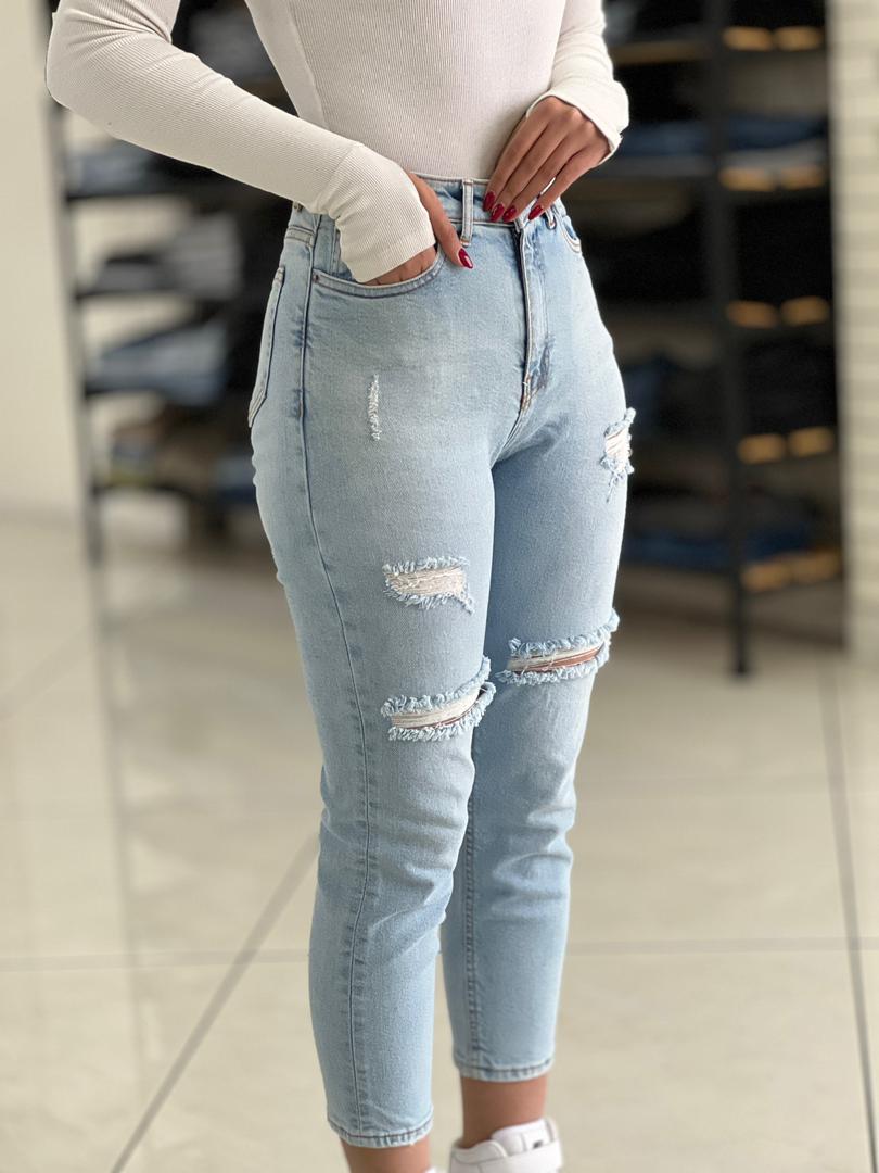 شلوار جین مام فیت یخی زاپدار کد ۲۱۳۲