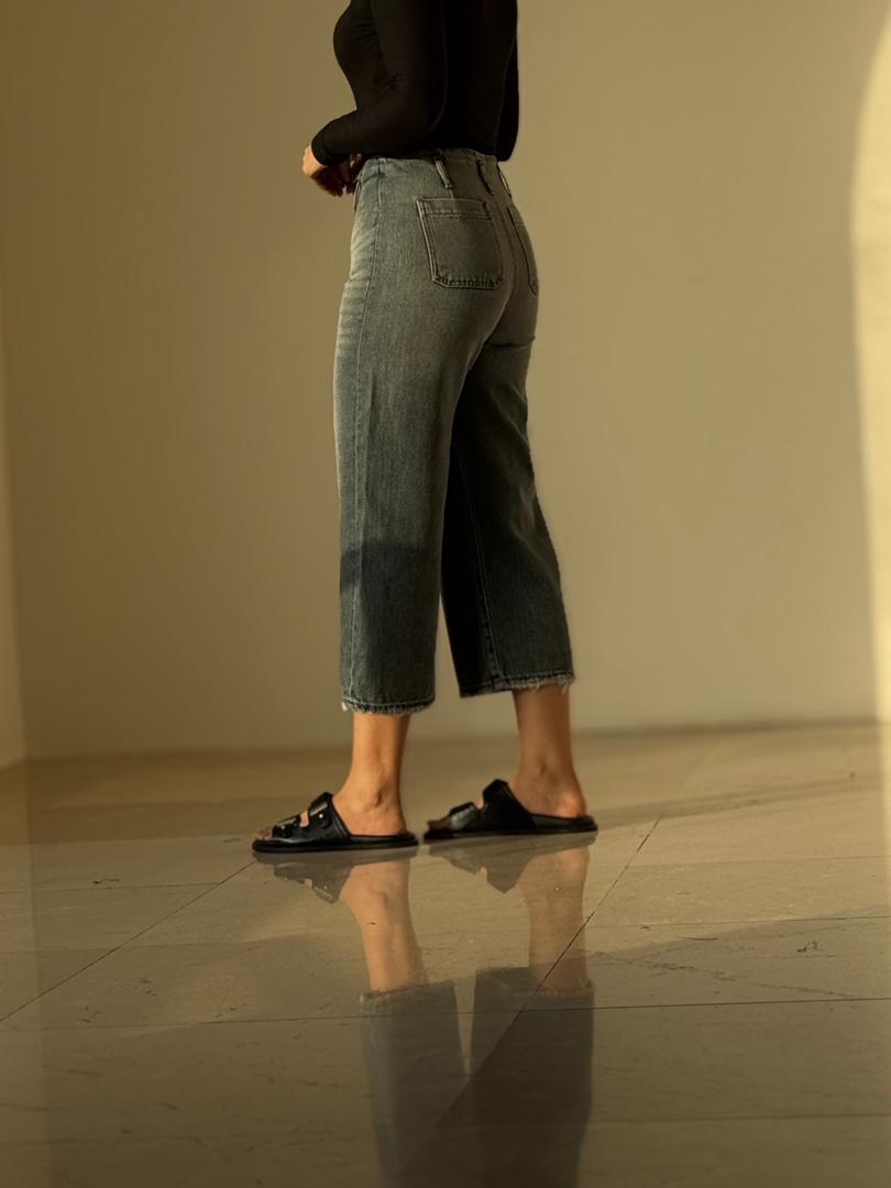 شلوار نیم بگ ذغالی پایین ریش کد ١٩۵۶