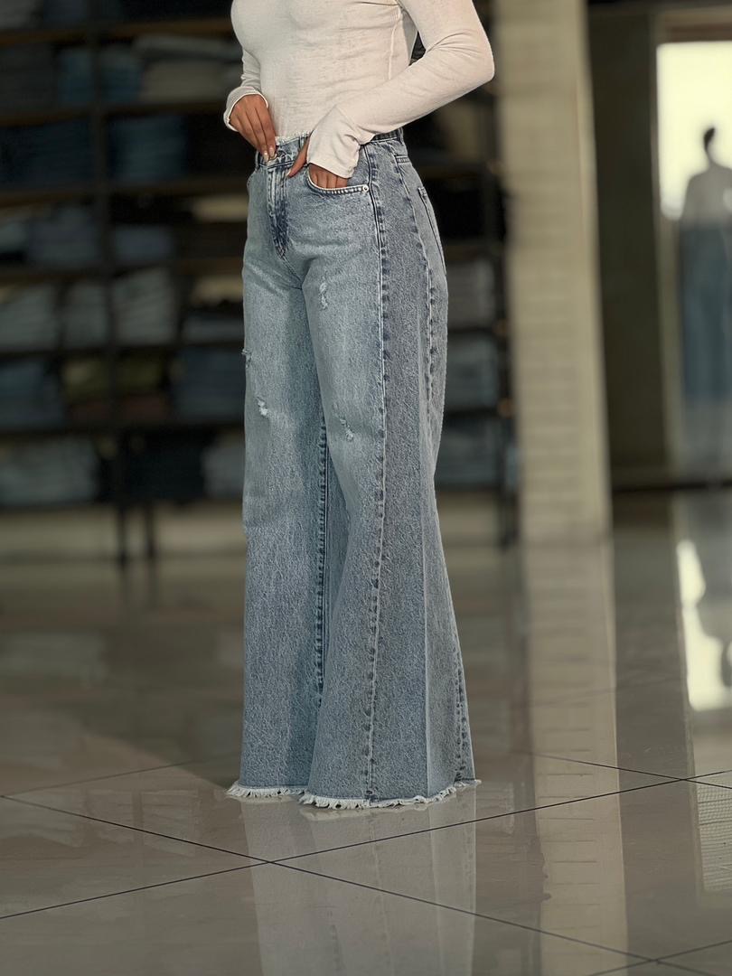 شلوار بگ جین آبی روشن زاپدار کد ۱۸۵۰