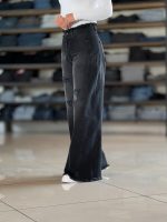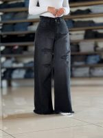 شلوار نیم بگ ذغالی پایین ریش کد ١٩۵۶