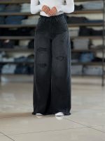 شلوار جین نیم بگ دمپا چاکدار کد ۱۸۶۰