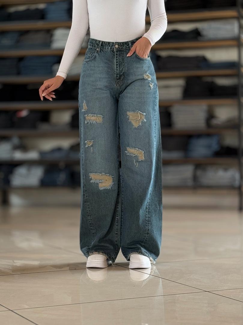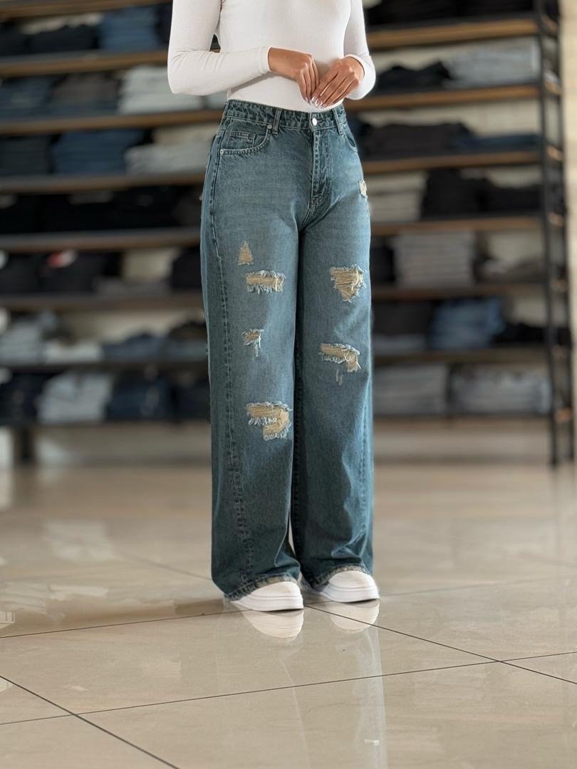 شلوار جین بگ زانو زاپ کد ۱۸۲۵