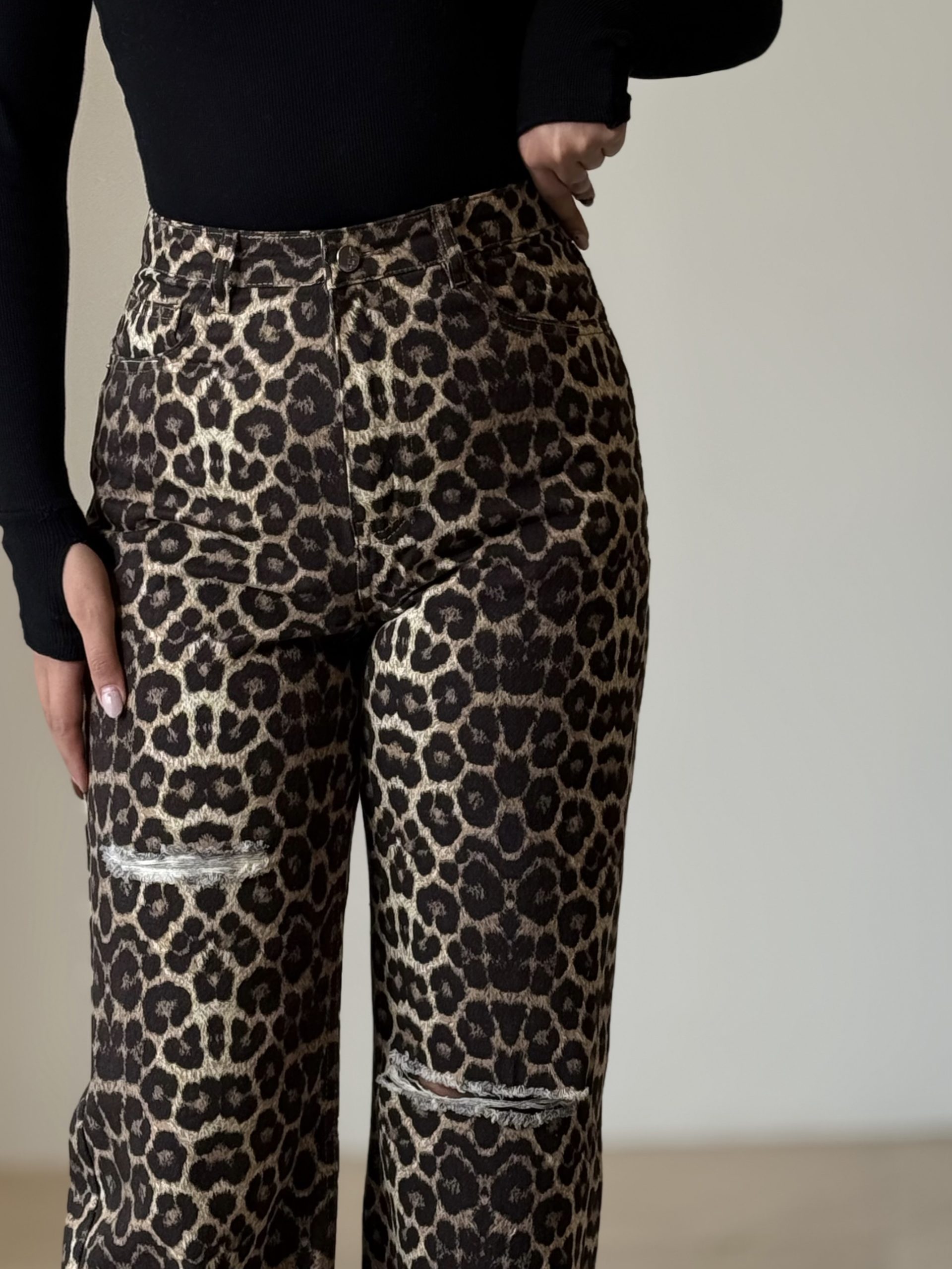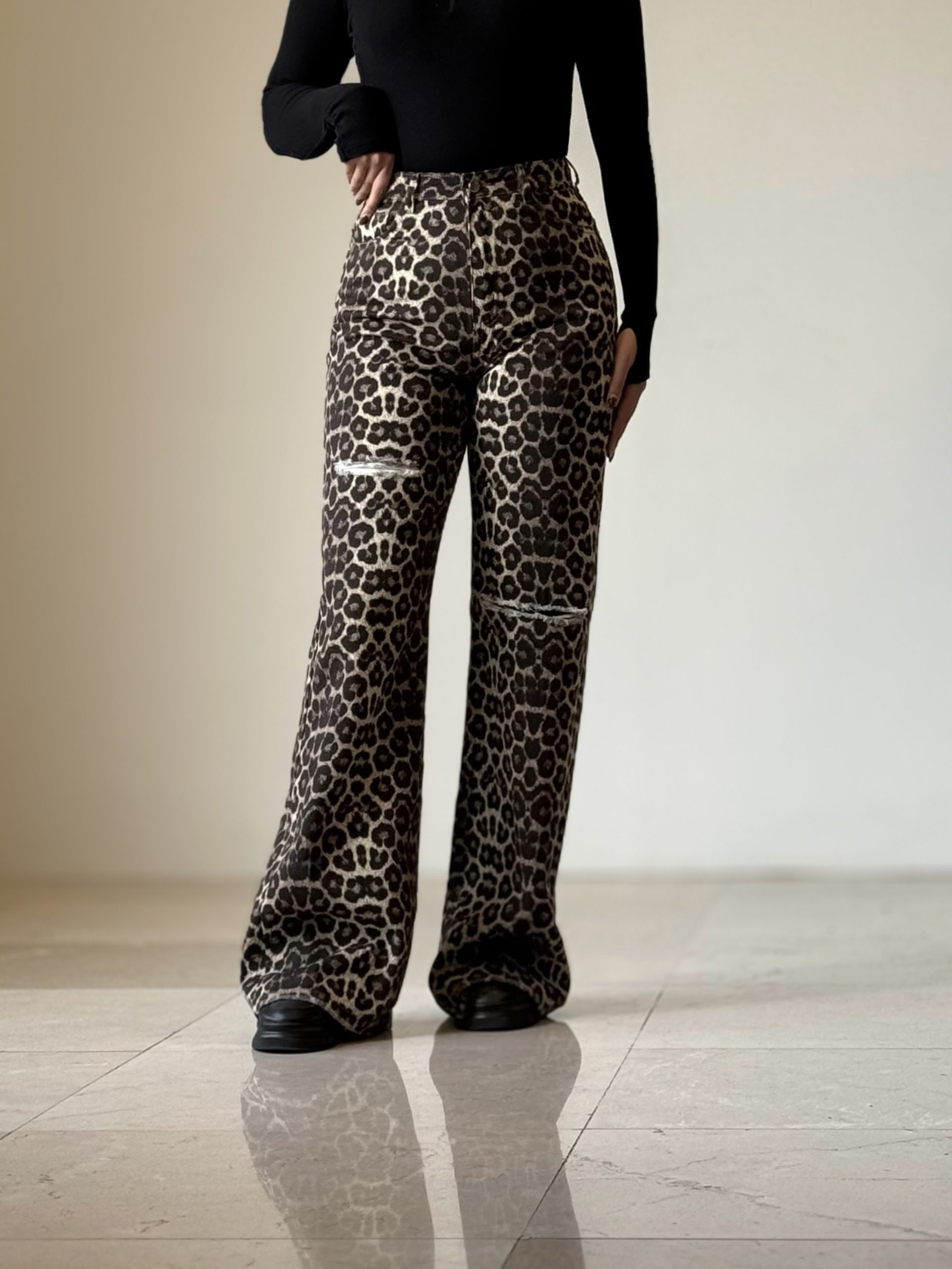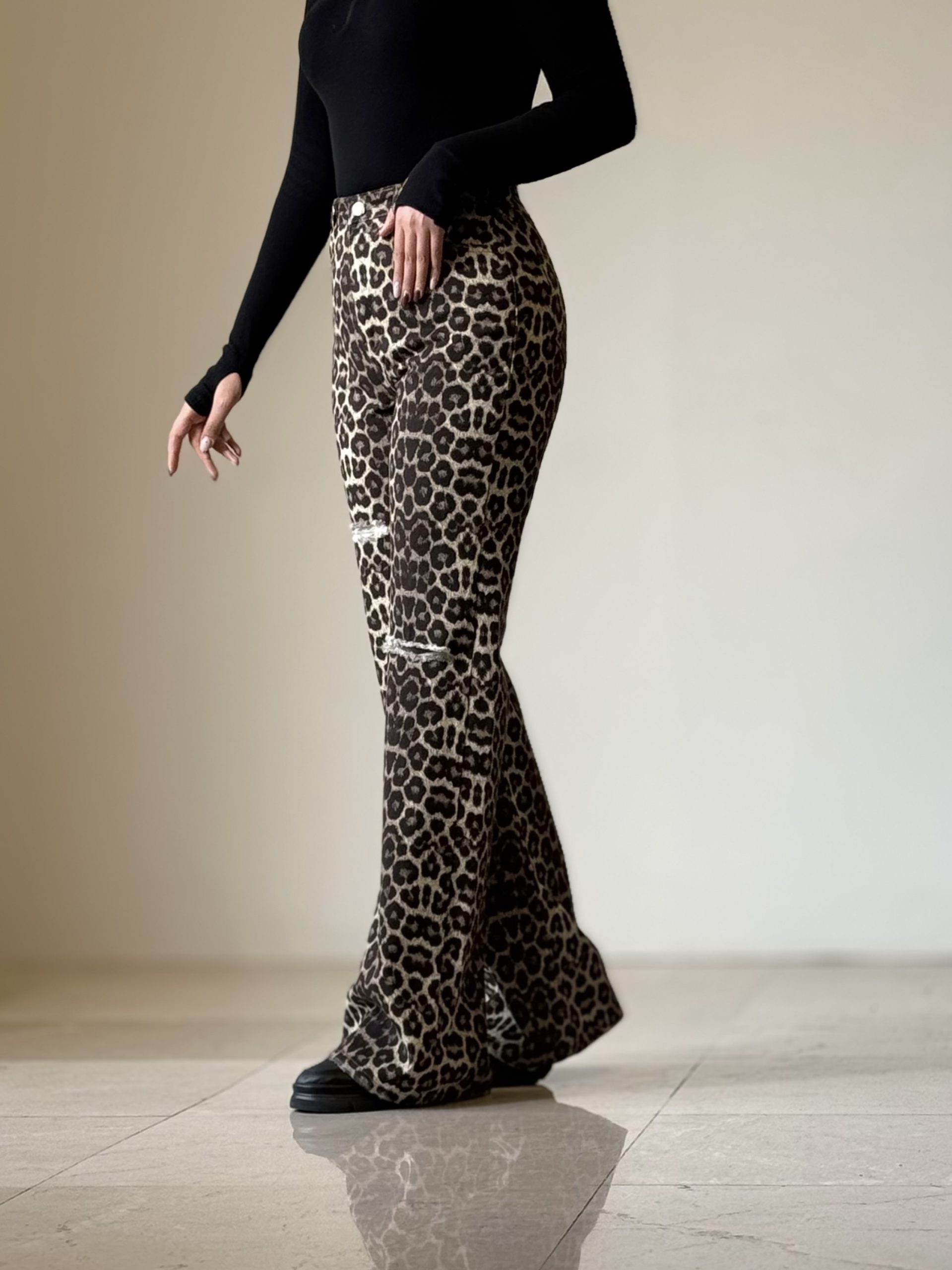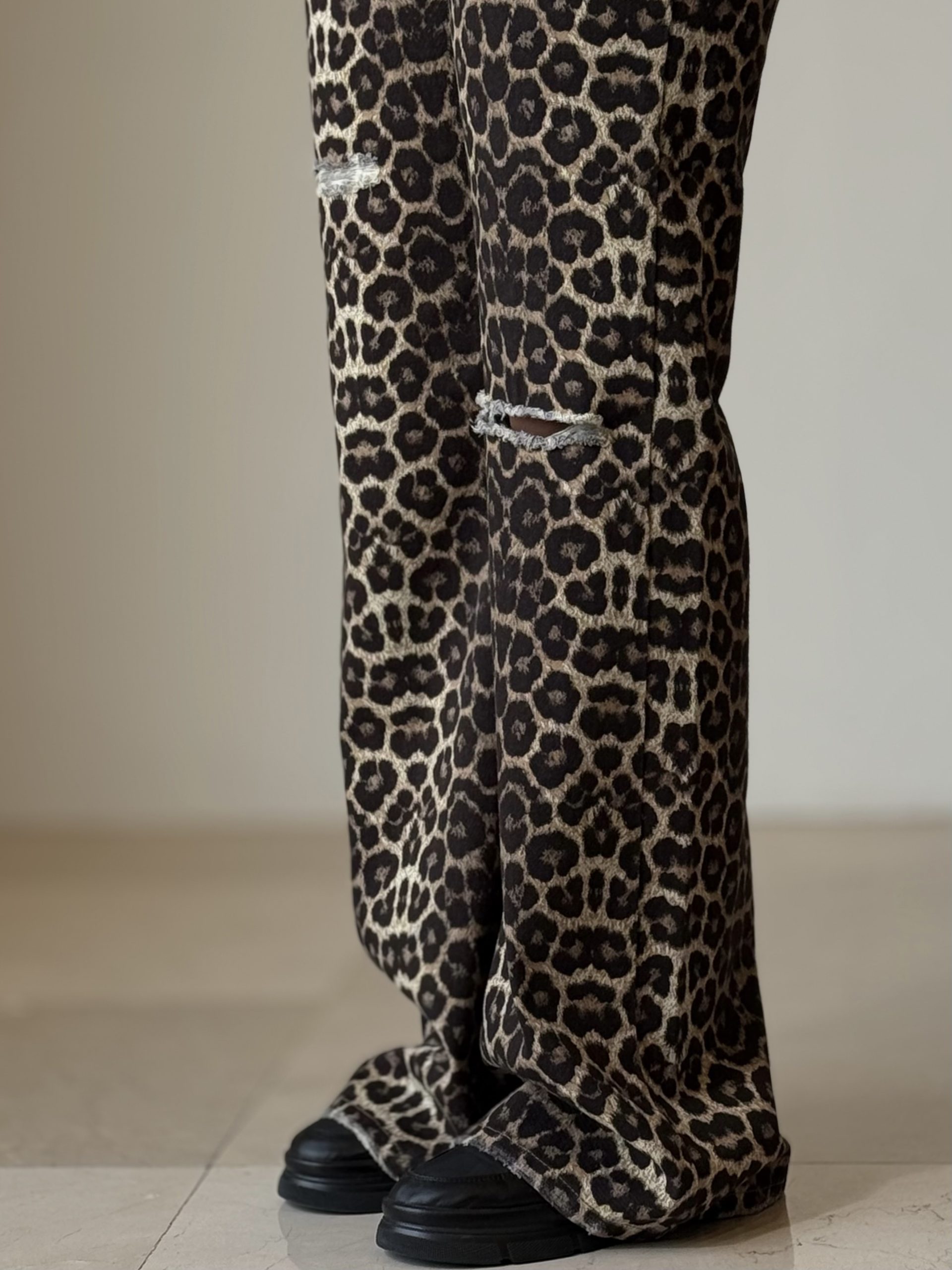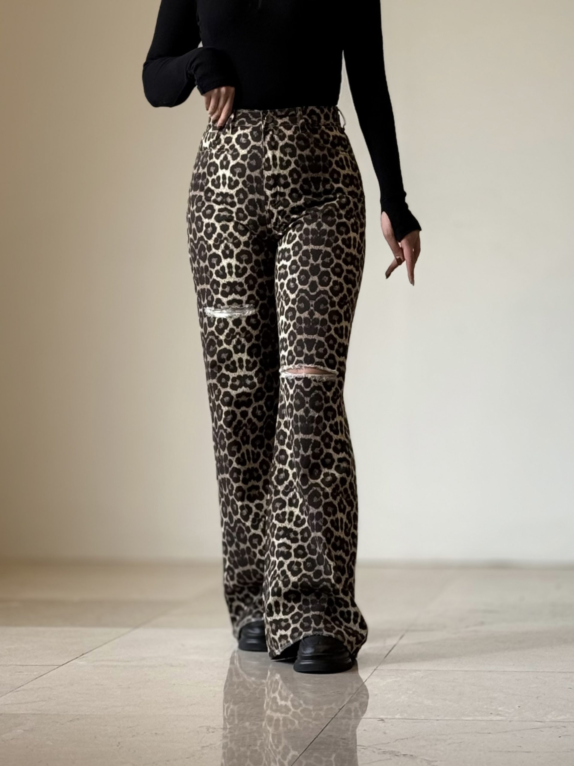 شلوار فلر بگ پلنگی زاپدار کد ۳۶۷۸
