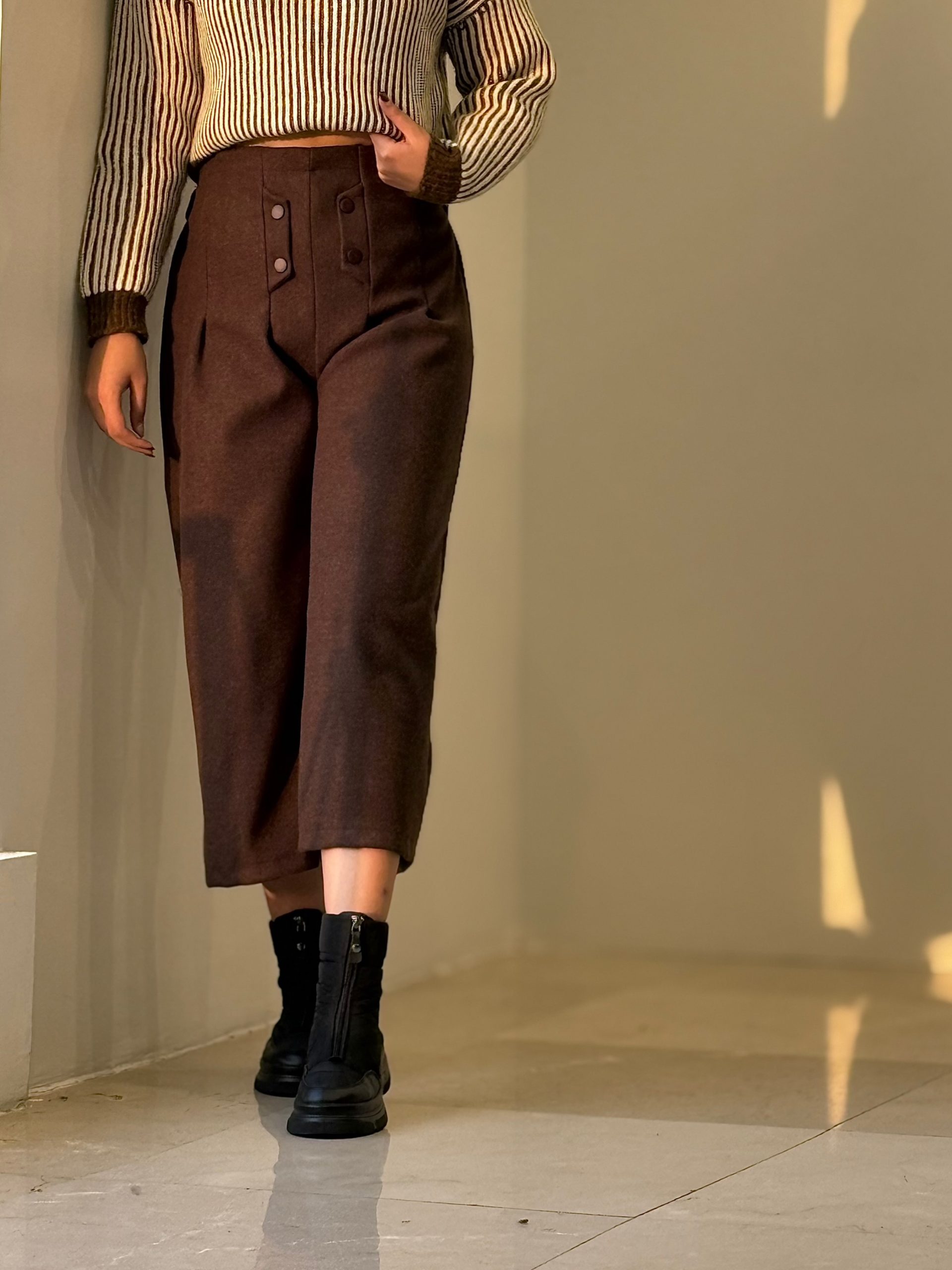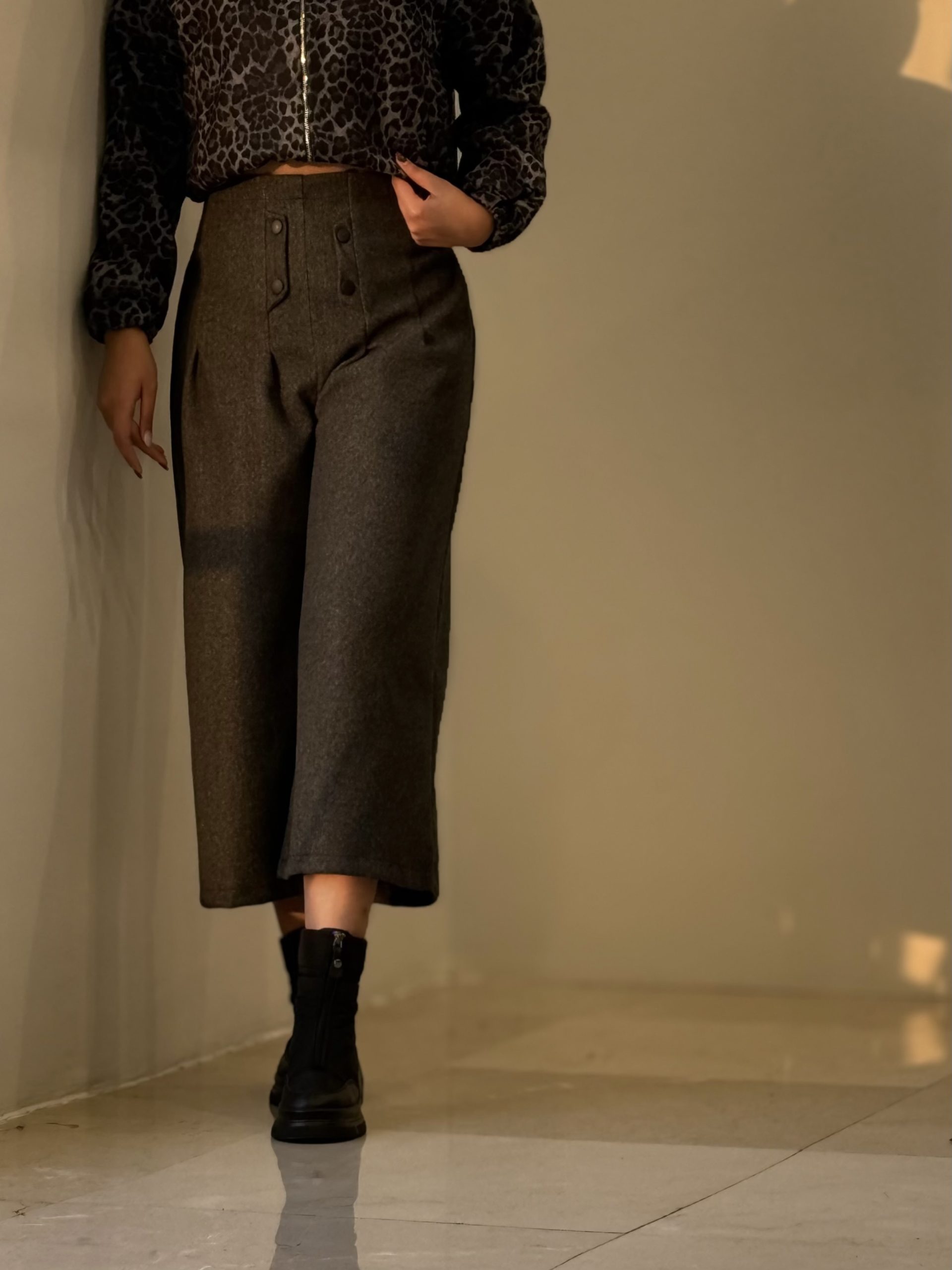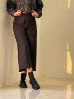 شلوار نیم بگ ذغالی پایین ریش کد ١٩۵۶