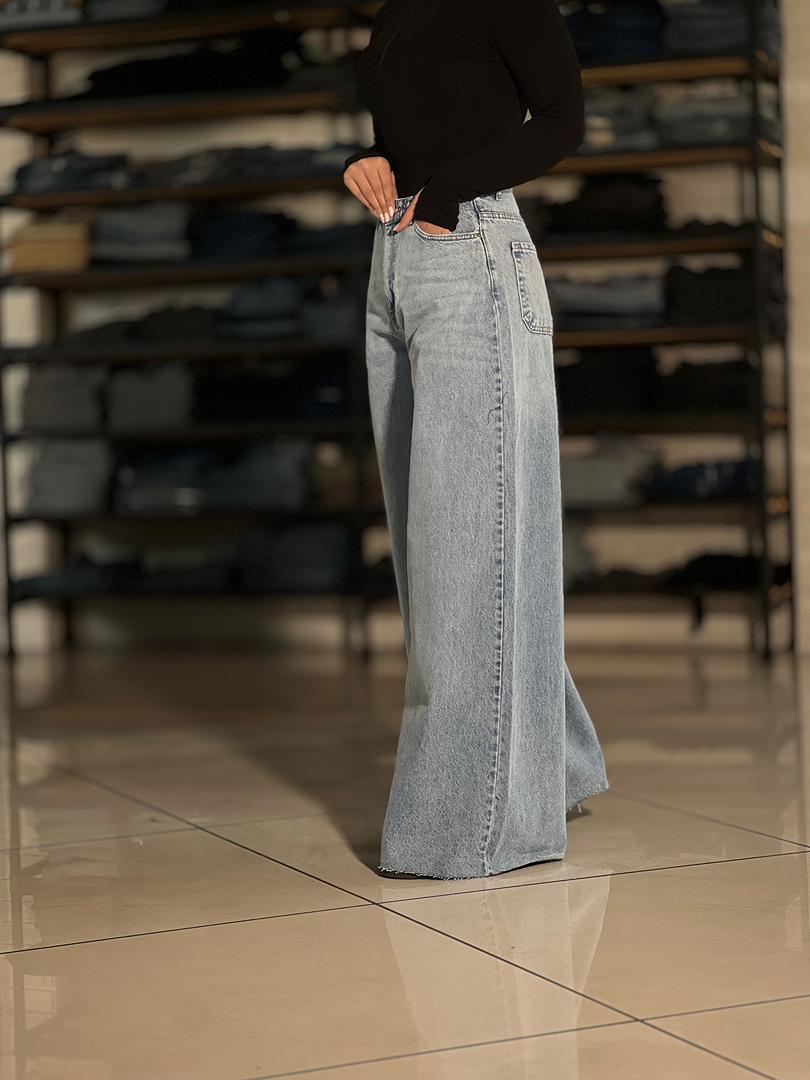 شلوار جین نیم بگ دمپا چاکدار کد ۱۸۶۰
