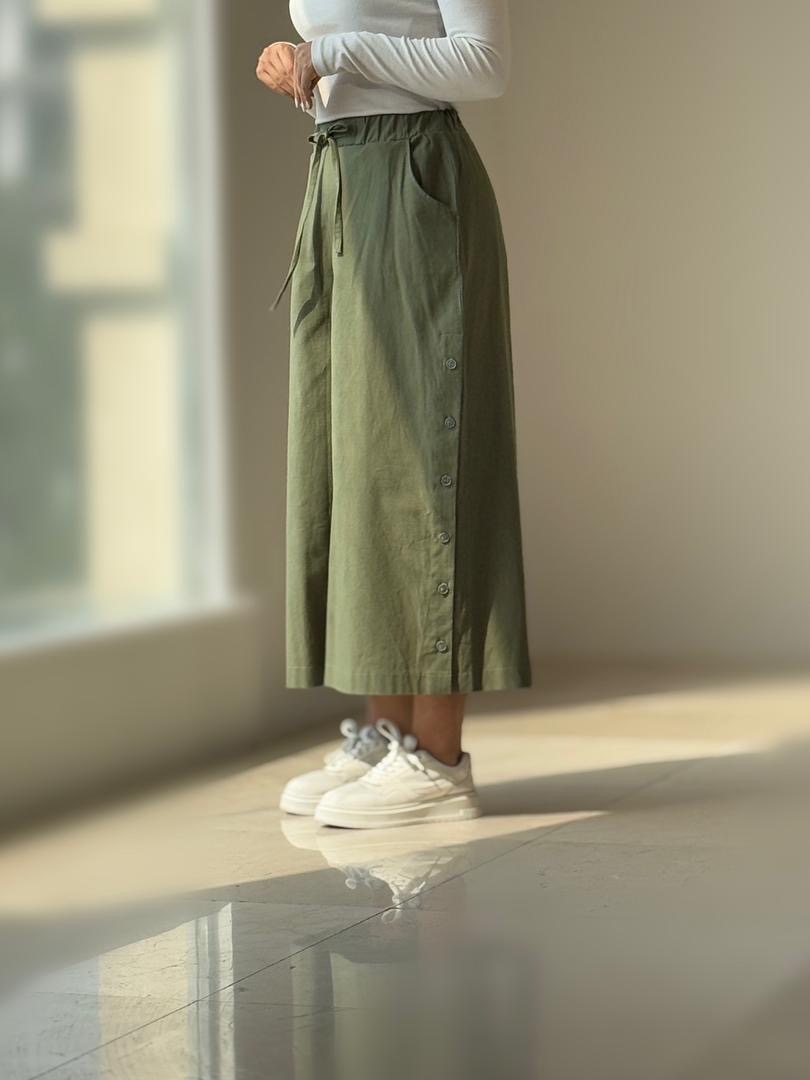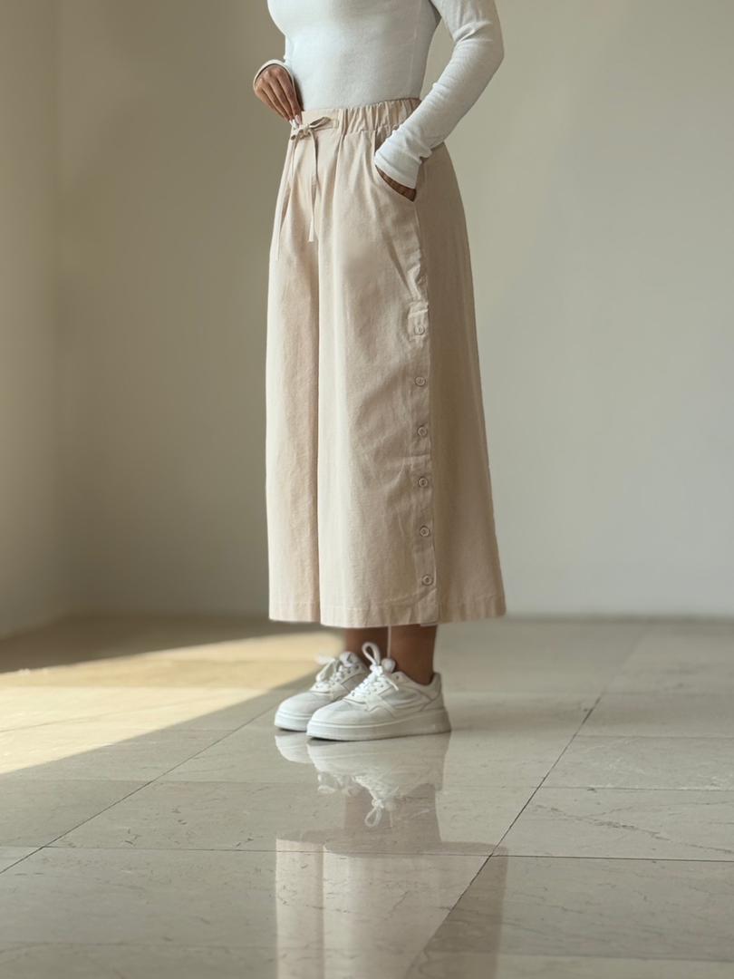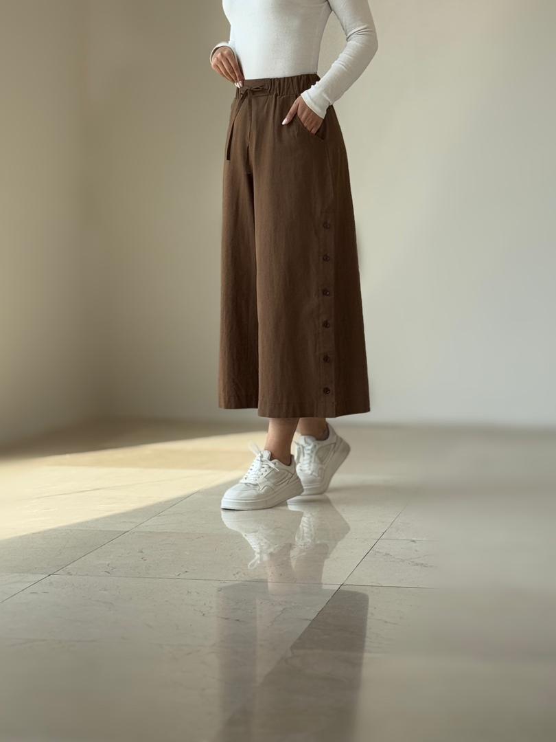 شلوار لینن واید بقل دکمه کد ۳۳۷۶