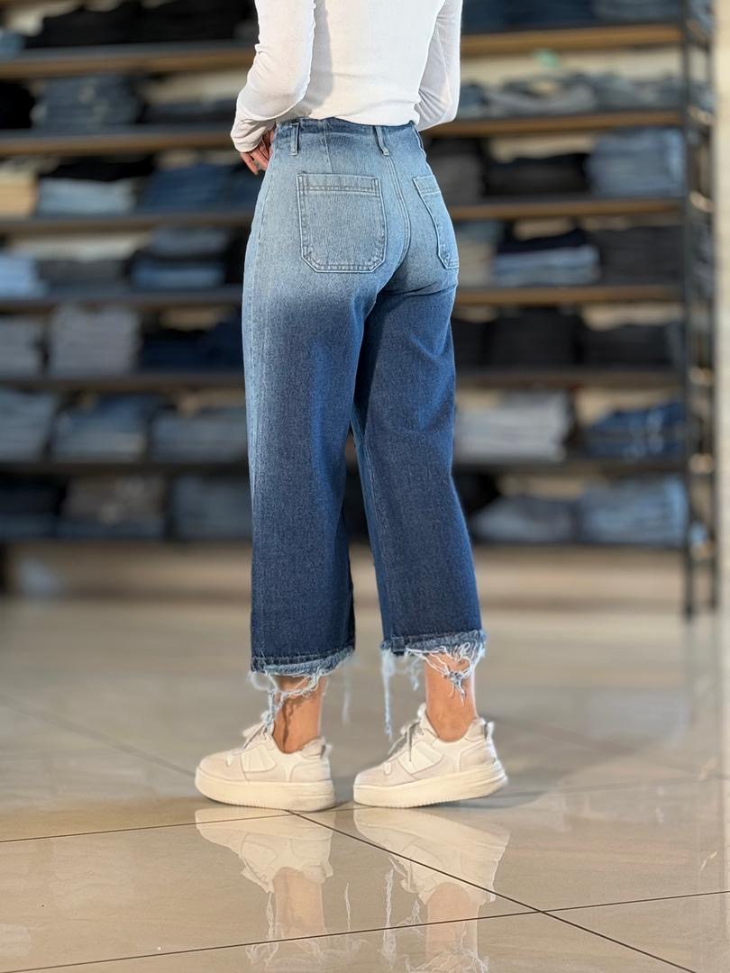 شلوار جین مام فیت سرمه ای کد ۱۹۶۷