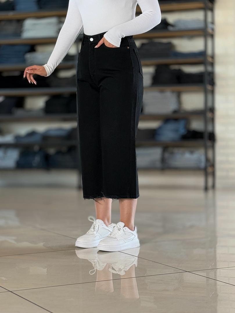 شلوار نیم بگ ذغالی پایین ریش کد ١٩۵۶
