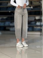 شلوار نیم بگ ذغالی پایین ریش کد ١٩۵۶