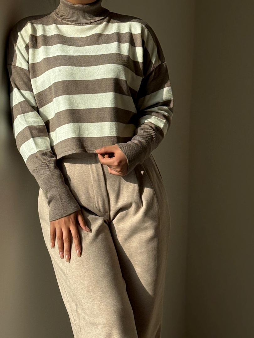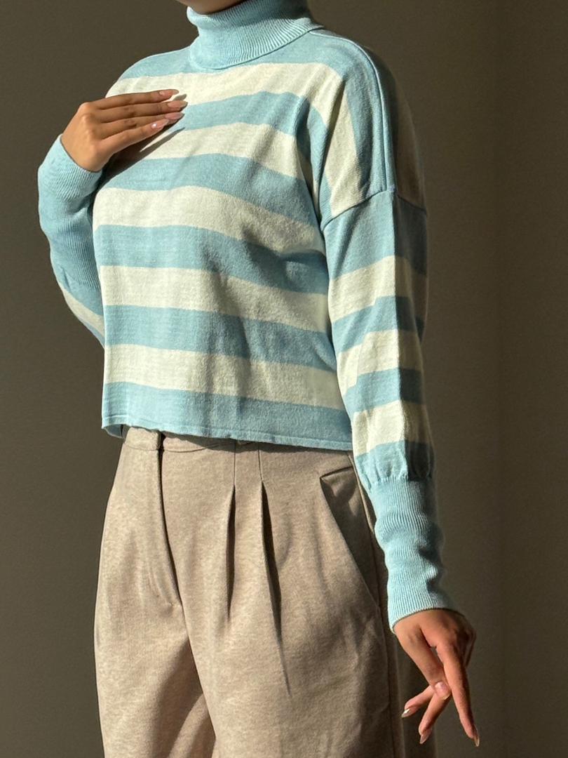 خانه بلوز کراپ بافت یقه اسکی کد ۳۵۱۱
